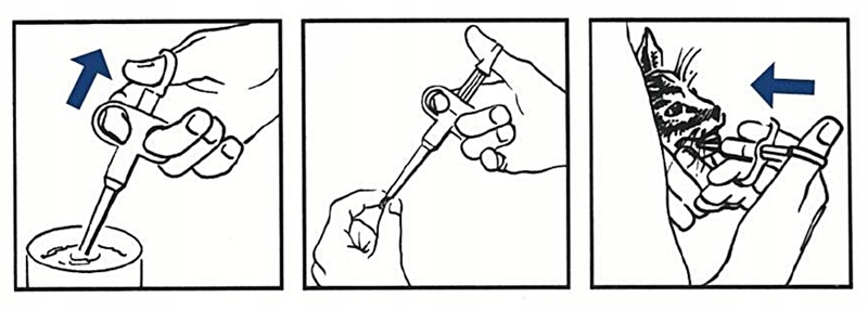 ВАЖНО: Делайте это осторожно, чтобы наше животное не подавилось. После нанесения таблетки промойте аппликатор водой и высушите.