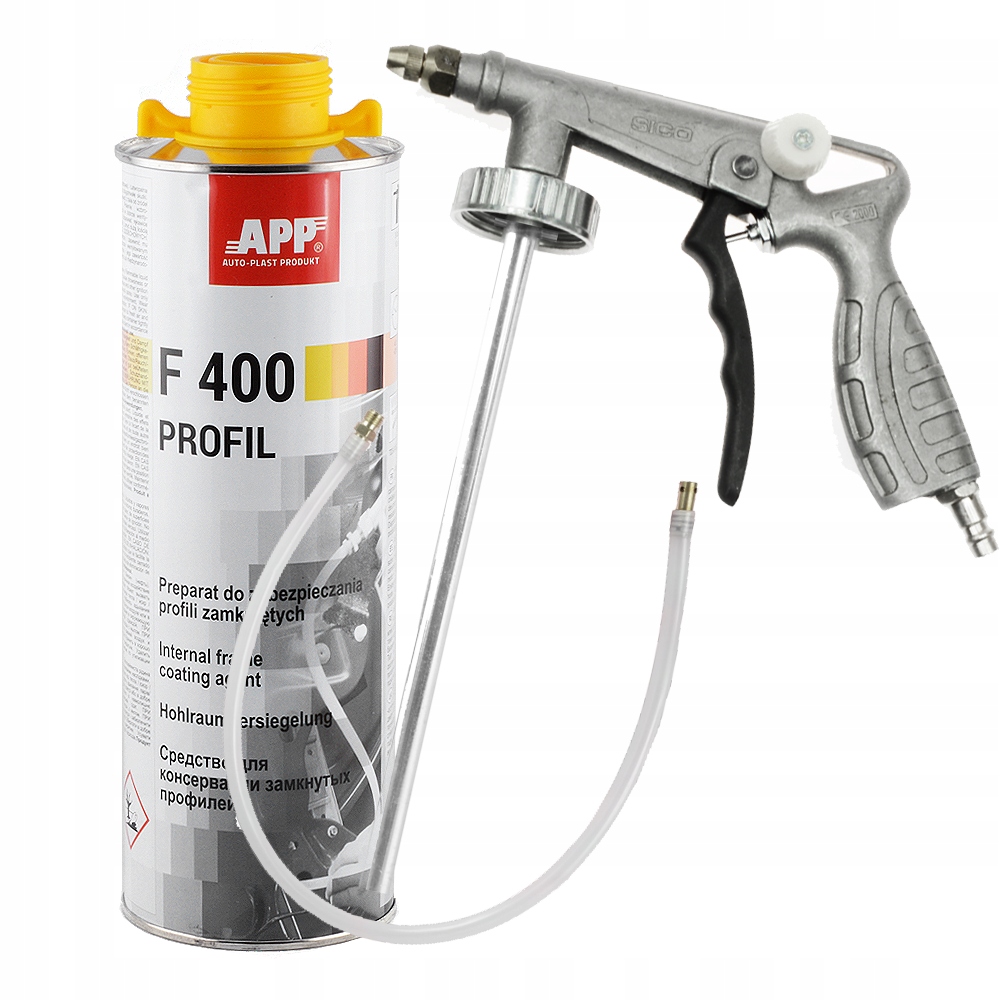 APP F400 Profil — постоянно эластичный препарат на основе минерального масла, парафина и пропиточных добавок для антикоррозионной защиты закрытых профилей и труднодоступных мест кузовов автомобилей, таких как: кузовные и дверные балки, а также моторный и багажник.
