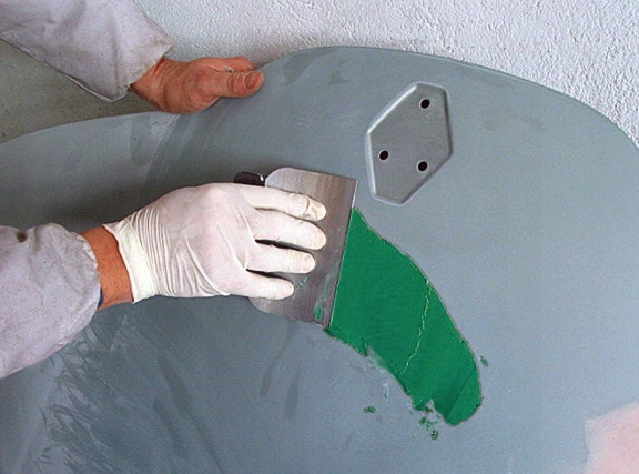 представляет собой двухкомпонентную полиэфирную шпаклевку, армированную коротким стекловолокном.