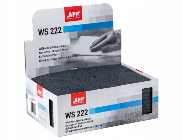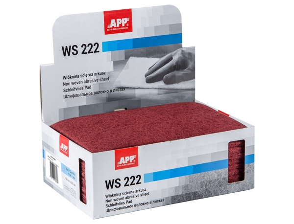 APP WS 222 представляет собой абразивный нетканый материал с открытой трехмерной сетчатой структурой из нетканых нейлоновых волокон, пропитанных смолой, с напылением на него высококачественного абразивного материала.