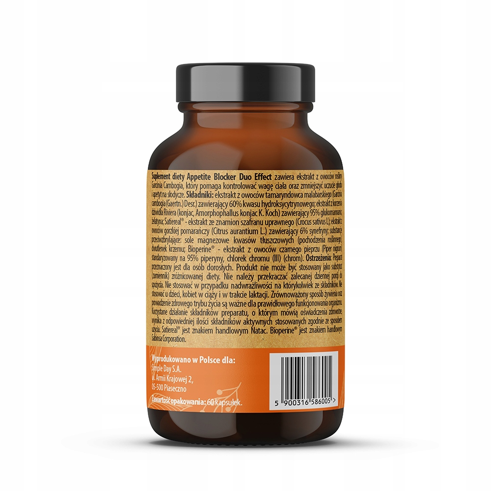 Appetite Blocker Duo Effect – добавка, снижающая тягу к сладкому и эффективно подавляющая аппетит. Благодаря пищевым волокнам он снижает усвоение жиров и ограничивает количество калорий из еды. Appetite Blocker Duo Effect в сочетании со сбалансированной диетой способствует снижению веса и предотвращает эффект йо-йо.