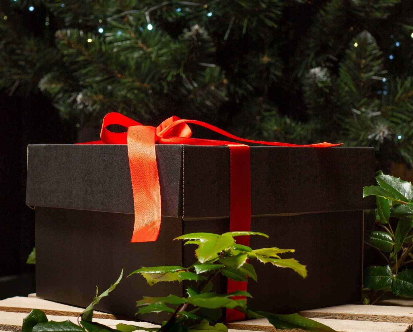 ЧЕРНАЯ ПОДАРОЧНАЯ КОРОБКА С ЛЕНТОЙ