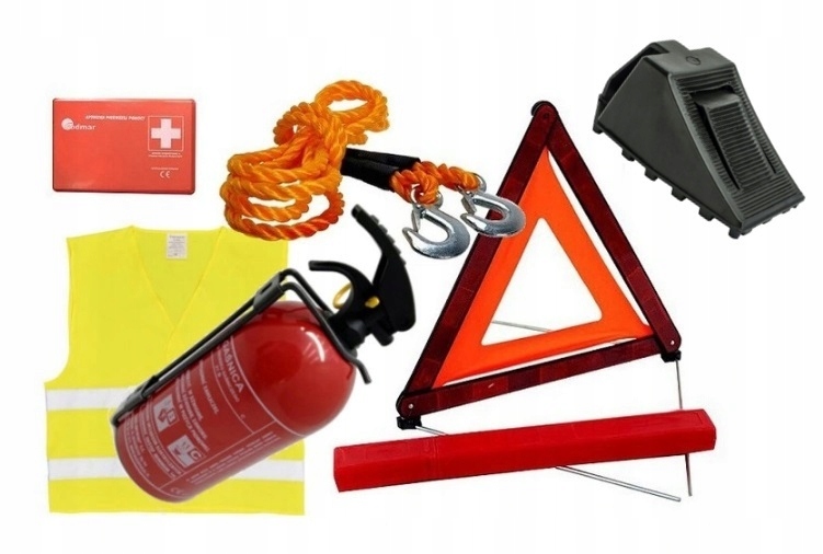⭐треугольник, аптечка, жилет, буксирный трос, огнетушитель и противооткатный упор.