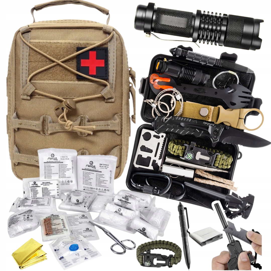 МЕДИЦИНСКИЙ НАБОР СО СНАРЯЖЕНИЕМ 40 ЭЛ ➕ НАБОР ДЛЯ ВЫЖИВАНИЯ 32 в 1