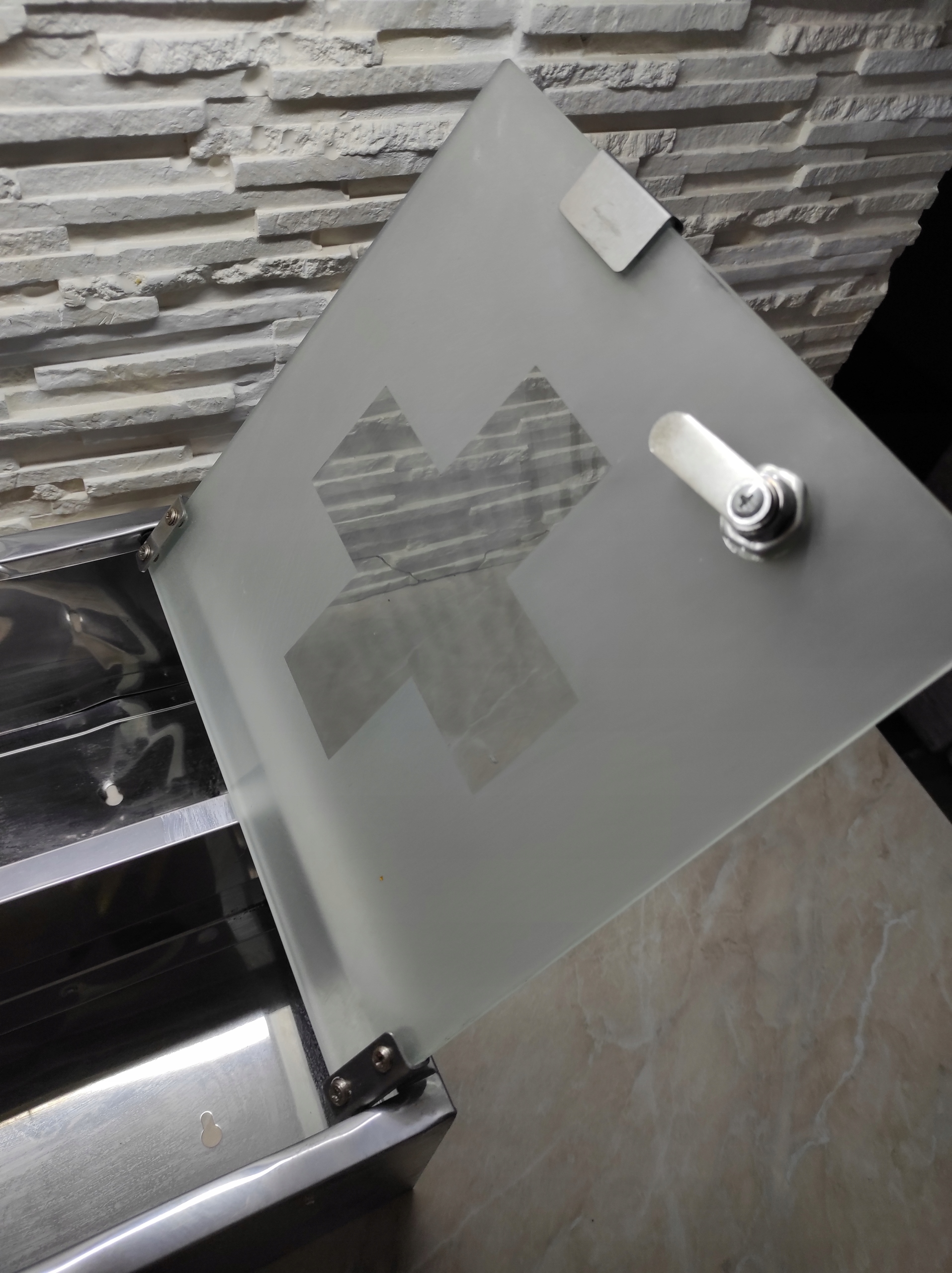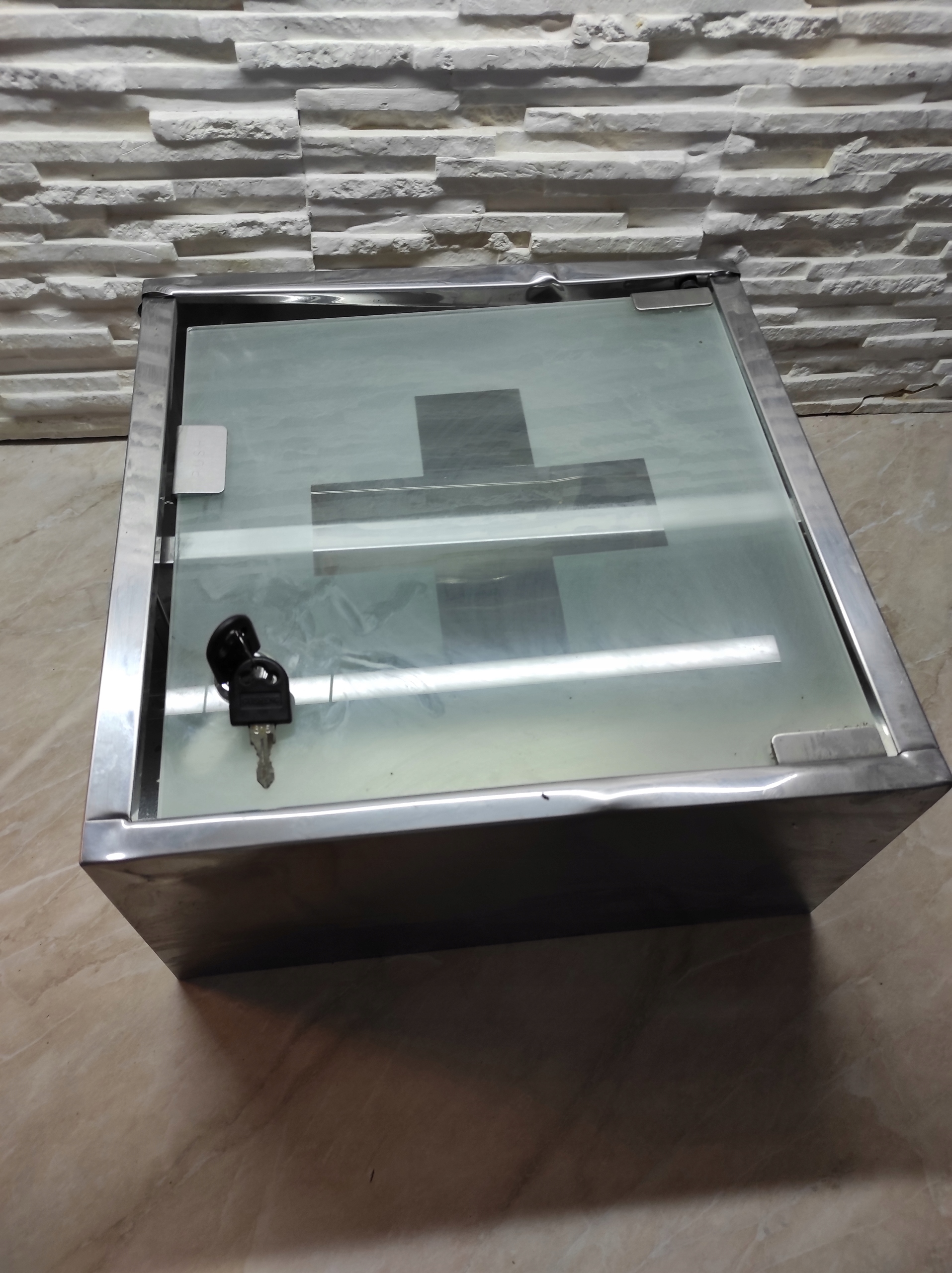 - Дверца из матового стекла с крестиком для оказания первой помощи.