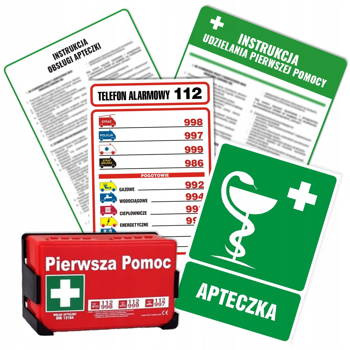 Основным оснащением каждого рабочего места является аптечка, которая должна содержать предметы первой помощи в соответствии со строгими правилами безопасности. Важным аспектом является также использование знака безопасности, содержащего инструкцию по использованию аптечки, ведь аптечный пункт на предприятии должен быть хорошо обозначен и легко доступен. Кроме того, руководство по охране труда и технике безопасности облегчит сотрудникам использование содержимого аптечки.