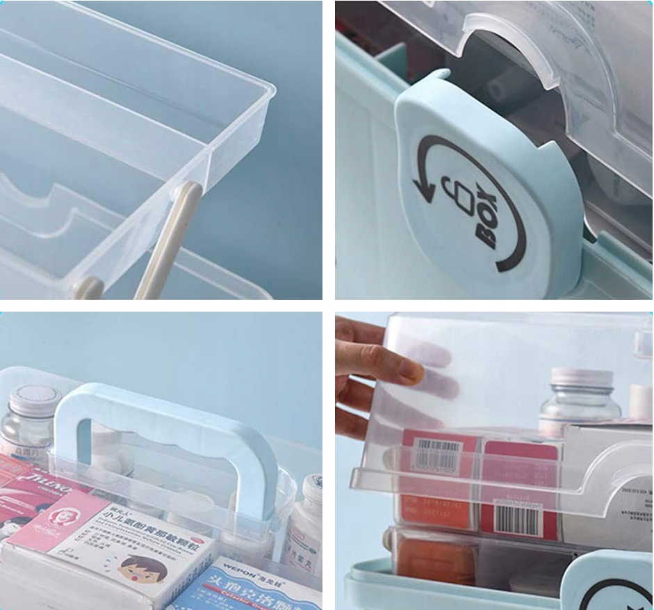 Оснащен трехъярусными отделениями, которые позволяют легко и безопасно разместить лекарства, аптечки, такие как пластыри, повязки, пластыри, кремы и многое другое.