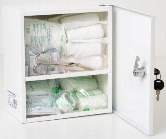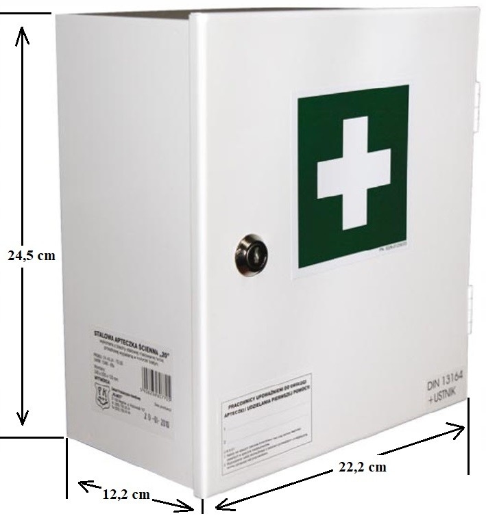 Фирменная металлическая аптечка с оборудованием DIN 13164 AS20