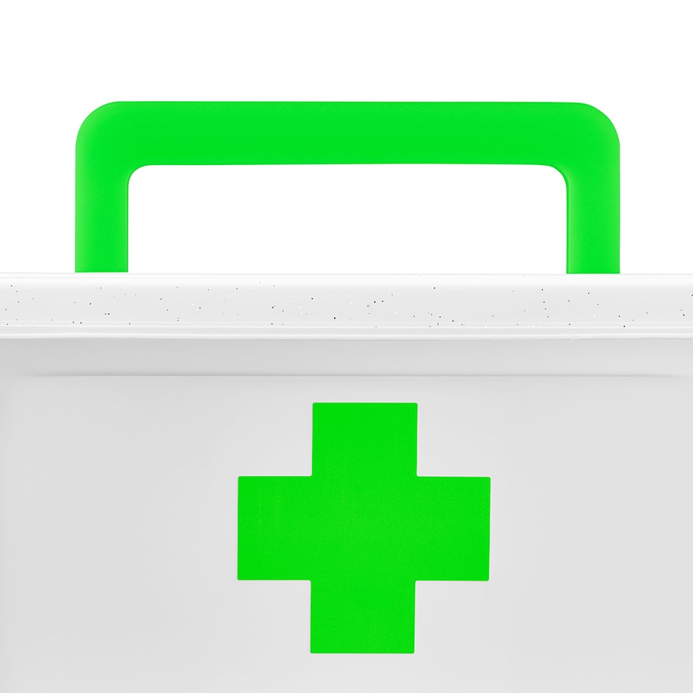 Белая коробочка с прозрачным вкладышем а крышка облегчает сортировку, защиту и доступ к лекарствам. Удобная ручка и неоновая прочная клипса позволяют легко переносить аптечку.
