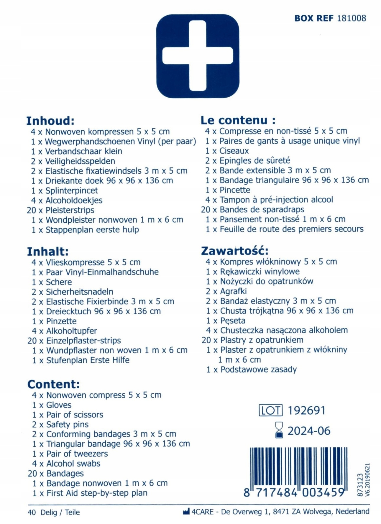 Просматривая «Аптечка першої допомоги, набір 40 предметів, перша допомога Premium», вы можете быть уверены, что данный товар из каталога «Аптечки первой помощи» будет доставлен из Польши и проверен на целостность. В цене товара, указанной на сайте, учтена доставка из Польши. Внимание!!! Товары для Евросоюза, согласно законодательству стран Евросоюза, могут отличаться упаковкой или наполнением.