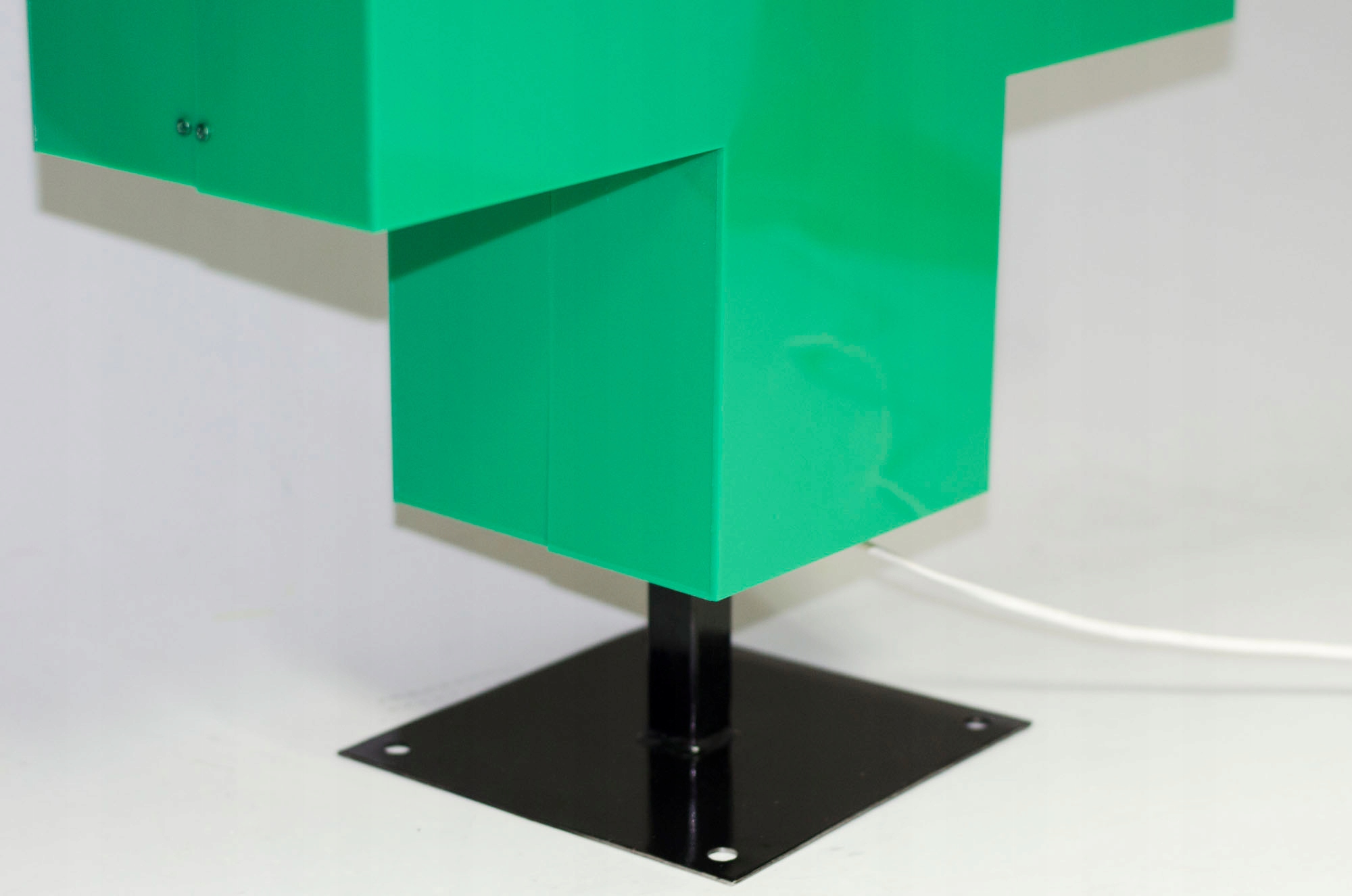 - материал: передняя, задняя и боковые стороны из оргстекла 3 мм выбранного цвета (образец доступен ниже) + по желанию лицевая наклейка нанесенной фольги, например, надпись АПТЕКА, графика аптеки (после выделения крестика это содержимое затемняется),