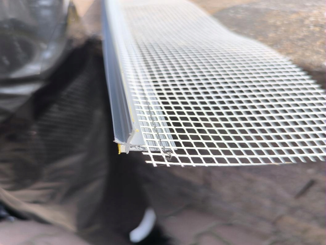 Полоса обслуживания с сеткой используется для выполнения расширения соединений между оконной рамой и структурной штукатуркой. Полоса оснащена арматурной стеклянной сеткой, специальной неабсорбентной дилатационной пеной, уплотнением, защищающим пену от грязи и разрушения, и потерянный элемент с приложенным клеевым слоем, к которому фольга защищает окно от грязи во время штукатурки. Трещины на соединении оконной рамы и гипса
