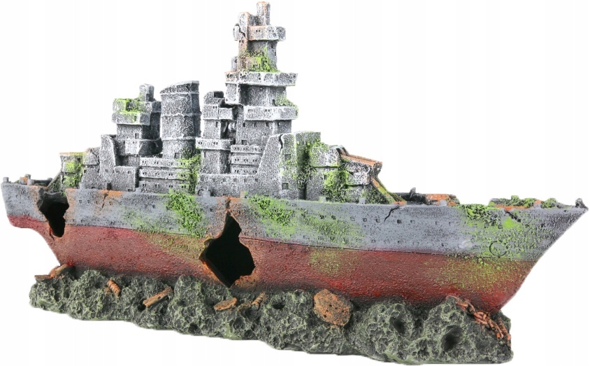 Раскрашенное вручную кораблекрушение, военный корабль для аквариума. Это прекрасное украшение, которое позволит вам создать в аквариуме удивительную атмосферу. Корабль серо-бордового цвета. Украшение полностью безопасно для рыб и других обитателей аквариума. Не меняет параметры воды и не нарушает биологический баланс в аквариуме.