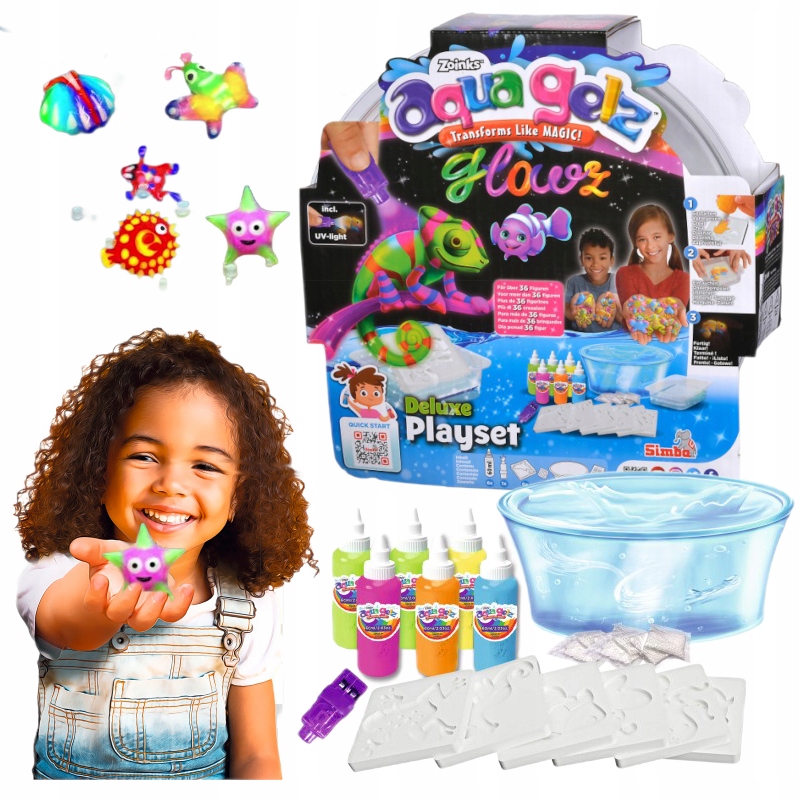Aqua Gelz — творческая игра для любознательных людей, которые хотят развить увлечения своих детей. Он предполагает создание мягких 3D-существ с использованием смеси волшебного раствора и цветного геля.