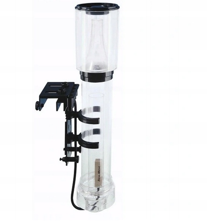 Мидифлотор, как и Минифлотор, представляет собой небольшой, но эффективный внутренний протеиновый скиммер с пневматическим приводом. Его главным преимуществом является двойная реакционная камера. Во внутренней камере мелкие пузырьки воздуха поднимают вверх большое количество воды. Затем вода попадает во внешний цилиндр, где на высоте нижнего конуса пузырьки воздуха останавливаются и сильным противотоком возвращаются вверх. Таким образом, все примеси переносятся в чашку. Такое решение обеспечивает длительное время контакта пузырьков с водой, что делает Мидифлотор очень эффективным скиммером.