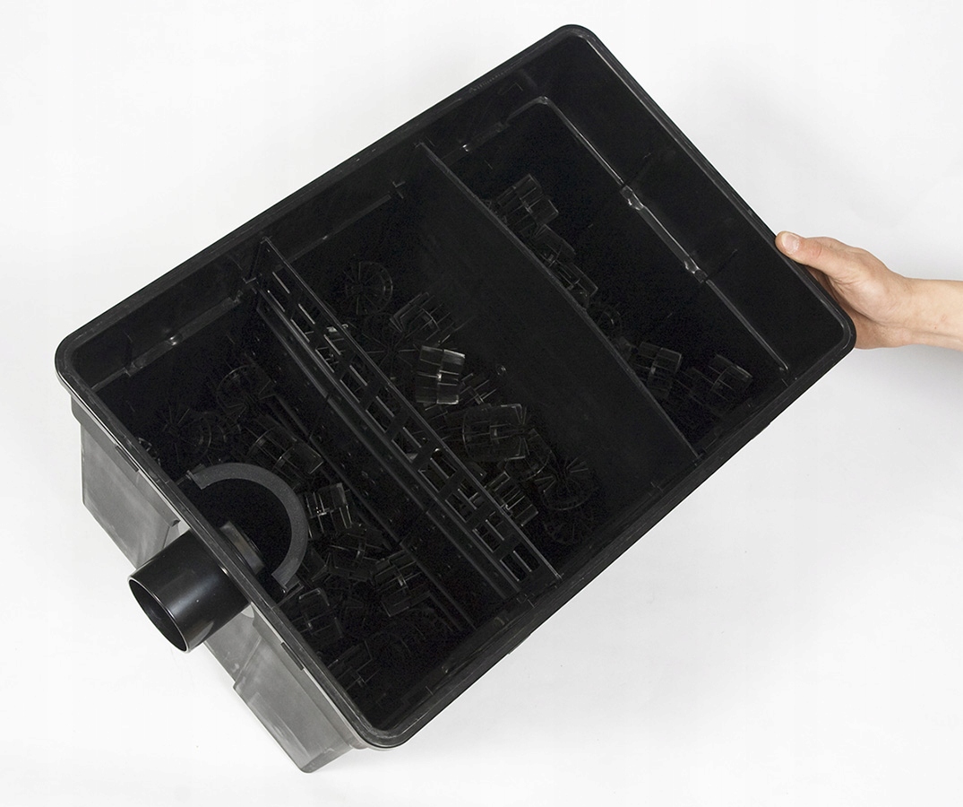 В комплект входят фильтрующие вкладыши, биобаллоны и губки общим объемом 70 л.