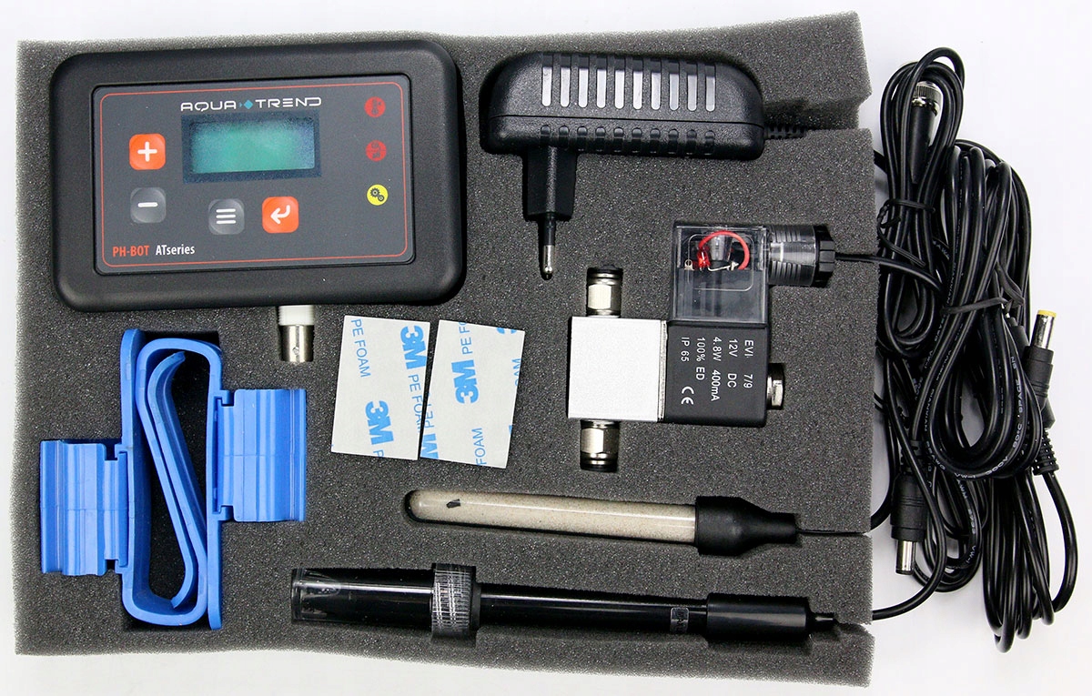 Аквариумный pH-регулятор В комплект входит: Контроллер, pH-зонд, датчик. температура, электромагнитный клапан.