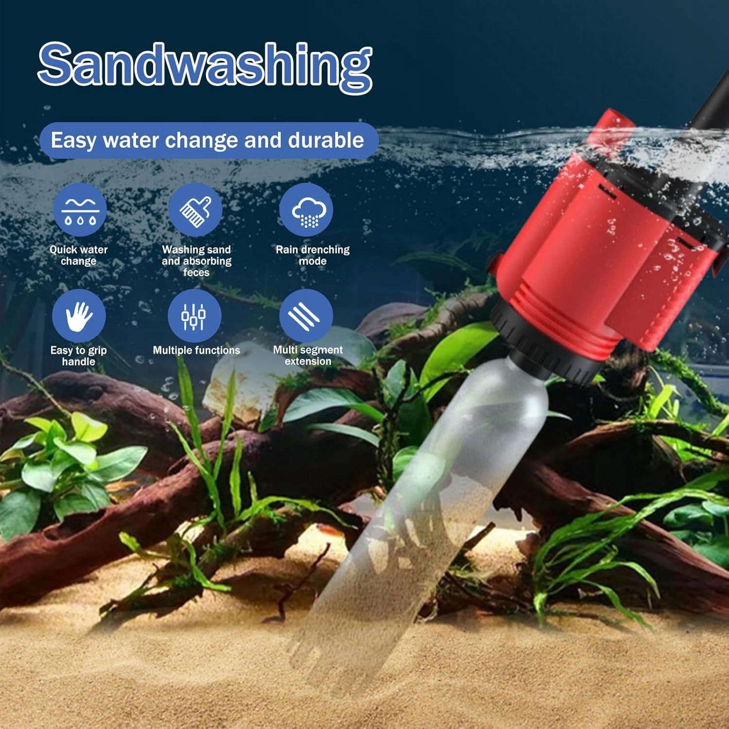 Многофункциональный чистящий агент для аквариума 6 в 1 является вашим комплексным решением, чтобы сохранить чистоту. Благодаря усовершенствованному пылесовому чистку, вы измените воду, вымывают песок и очистите грязь в мгновение ока.