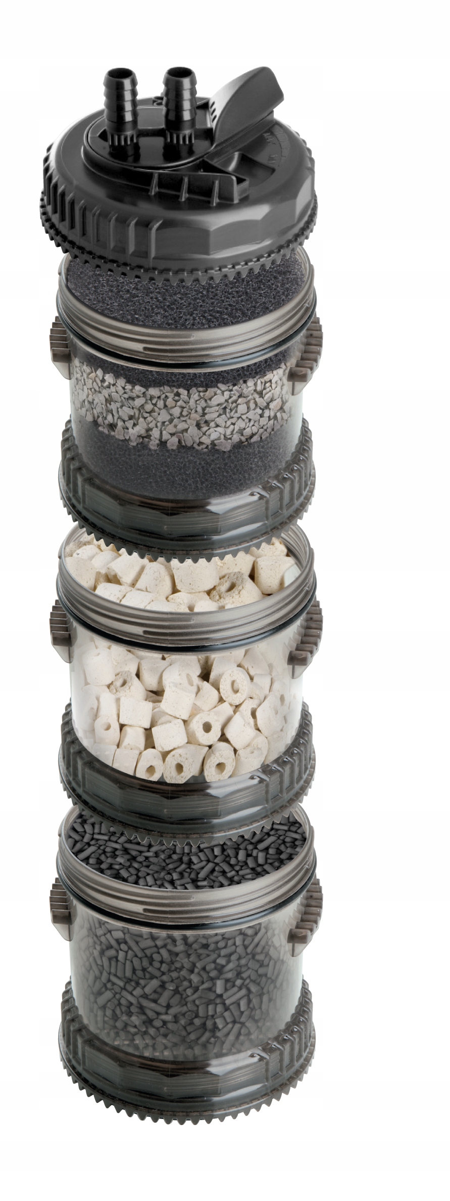 Отдельные контейнеры MULTI CARTRIDGE PRO можно соединять линейно для формирования колонн и последовательно для создания групп колонн. Таким образом, мы можем постепенно увеличивать емкость фильтрующего материала в фильтре. До 8 контейнеров могут быть объединены вместе. Благодаря этому фильтр МУЛЬТИКАНИ может эффективно работать как в 20-литровых, так и в 320-литровых аквариумах.