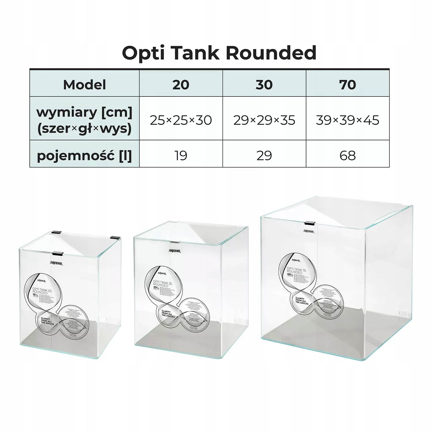 Аквариумы линейки Opti Tank Rounded имеют кубическую форму и доступны в трех размерах: