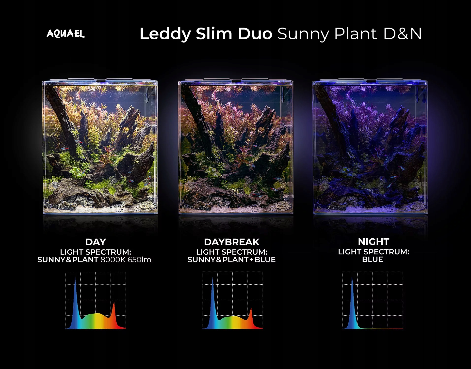 · Комплексное освещение Leddy Slim Duo Sunny&Plant D&N 10W, которое прекрасно воспроизводит цвета внутренней части аквариума благодаря солнечному спектру и поддерживает быстрый и беспрепятственный рост растений благодаря спектру растений. Дополнительно светильник имеет 3 режима освещения: ДЕНЬ/РАСВЕТ/НОЧЬ