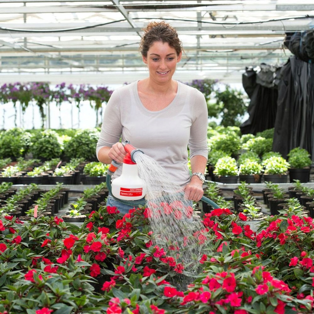 Пистолетная ручка с замком позволяет удобно поливать еще больше растений. Удобно держаться в одной руке.
