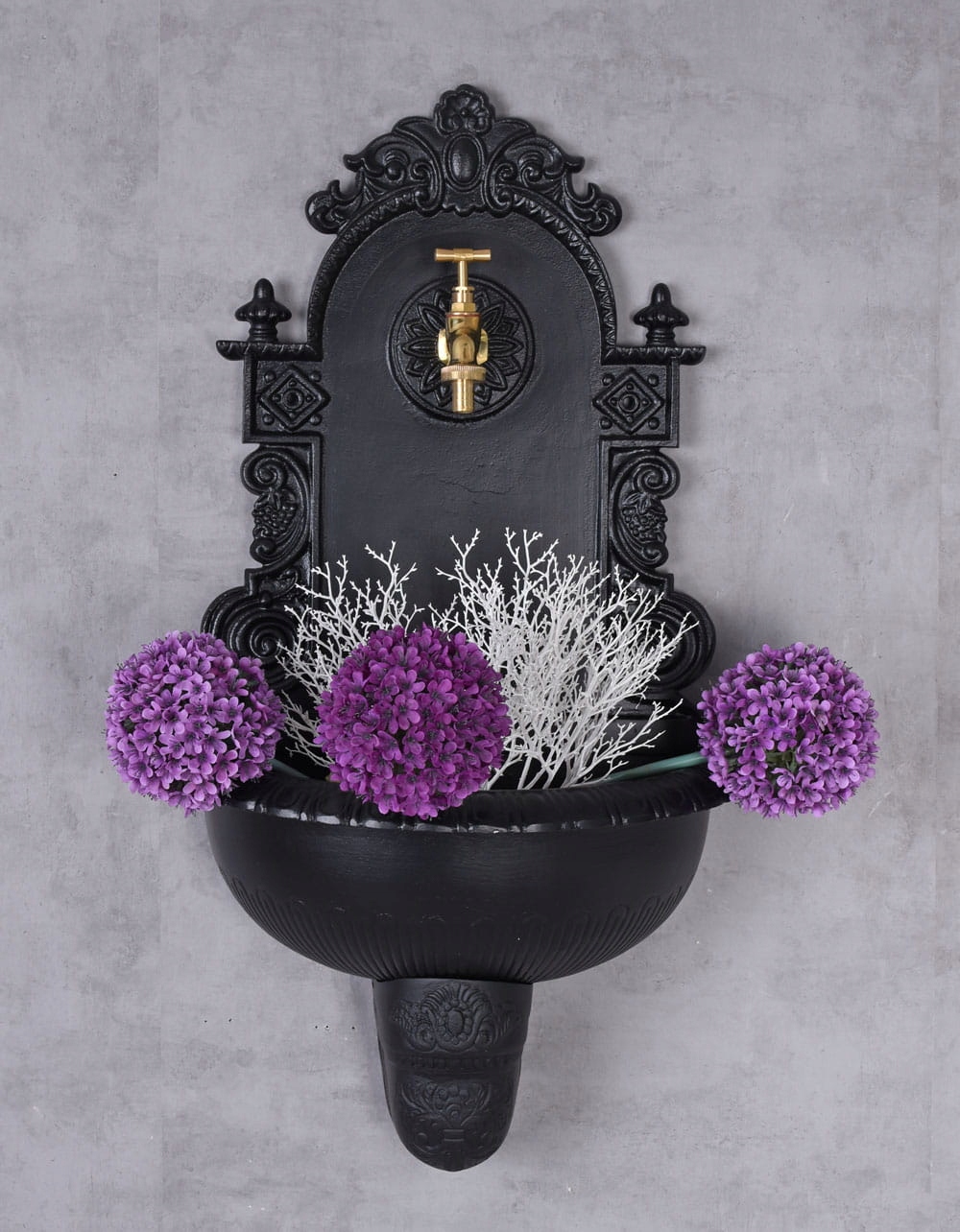 Садовый аквариум – это фантастический элемент садовой архитектуры. Он выполнен в стиле ренессанс, поэтому наверняка понравится всем любителям классических решений. Это изделие имеет красивый черный цвет, который достаточно универсален и прекрасно сочетается с другой садовой техникой. Садовая раковина изготовлена из материалов с лучшими качественными параметрами. К ним относятся алюминий и латунь, из которых сделан красивый кран. Садовый аквариум имеет богатый стиль и будет идеально смотреться в любом домашнем саду.