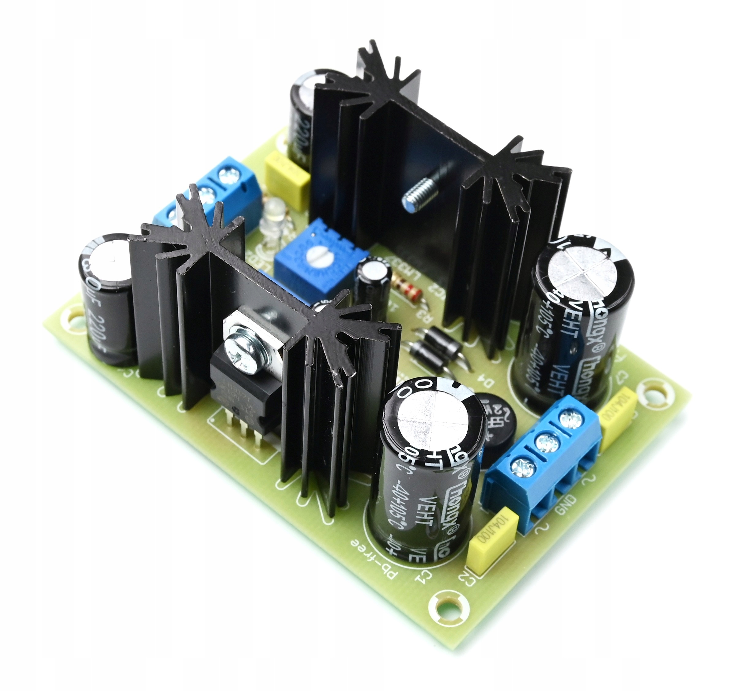 Система позволяет плавно регулировать напряжение в диапазоне +1,5В…+37В, -1,5В…-37В с помощью прецизионных потенциометров. Максимальный ток блока питания 2х1,5А. Комплект имеет ограничение выходного тока и защиту от короткого замыкания. Он очень подходит для питания аудиосистем из-за отсутствия помех, связанных с переключением блоков питания. Система не требует настройки или специальной активации. При правильной установке работает сразу после включения. Источник питания требует подключения к сетевому трансформатору (предпочтительно тороидальному) с напряжением макс. 2x24 В и ток мин. 2х1,5А.