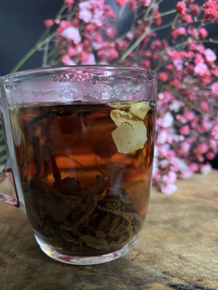 Ингредиенты: Fujian Белый чай, засахаренная вишня, апельсиновая кожура, календарие, аромат фруктов. C) И мы варили около трех минут.