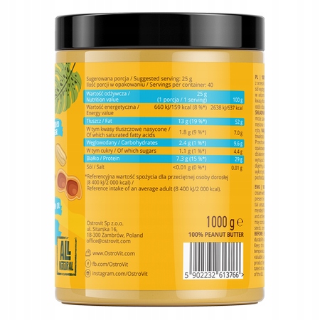 Арахісове масло OstroVit 1 кг ГЛАДКОГО АРАХІСОВОГО МАСЛА
