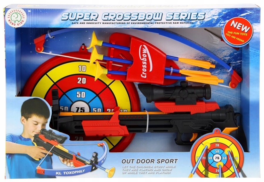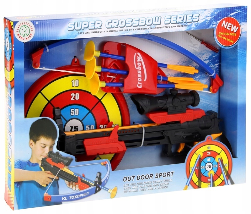 Арбалет доставит вашему ребенку массу удовольствия как дома, так и на природе. Игрушка имеет удобный механизм натяжения веревки. Вставив стрелу в нужное место и прицелившись, достаточно нажать на спусковой крючок. Каждая стрела имеет на конце резиновую присоску, что делает игру абсолютно безопасной. Щит обогатит соревнование в получении максимально возможного результата.