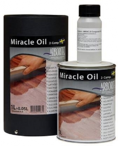 Miracle Oil — отверждающее масло на основе уретана, модифицированное сосновым маслом. Он сочетает в себе внешний вид промасленного пола с простотой ухода. Отверждающий компонент значительно облегчает и ускоряет нанесение масла и обеспечивает поверхность с действительно высокой износостойкостью. Только для внутреннего использования. Отвердитель содержит изоцианаты.