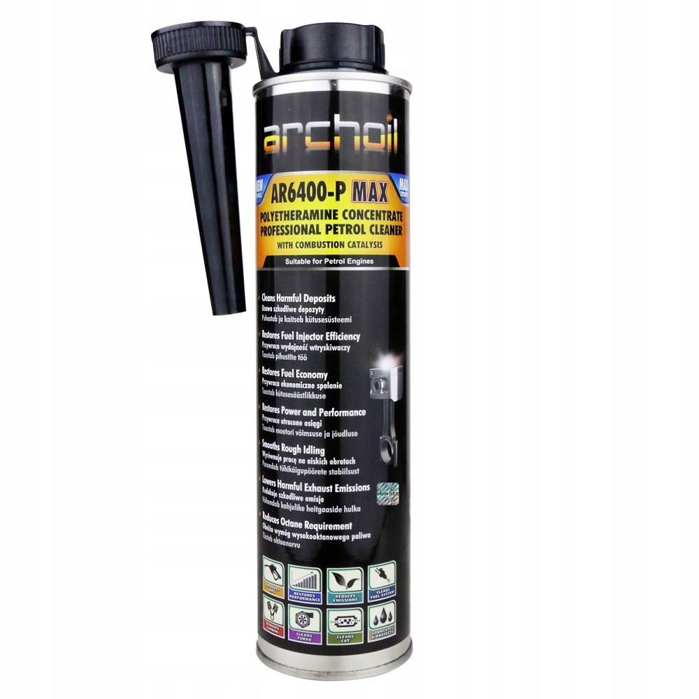 Archoil AR6400-P MAX — присадка к бензинам последнего поколения на основе современных высокопрочных полиэфираминов (ПЭА), которая быстро и безопасно удаляет резину, лак, нагар и нагар из топливной системы и двигателя. Далее, дополнительные усовершенствованные модификаторы сгорания максимизируют эффективность и результативность процесса сгорания, облегчая удаление и дожигание остатков сгорания углеводородов и снижая выбросы вредных соединений.