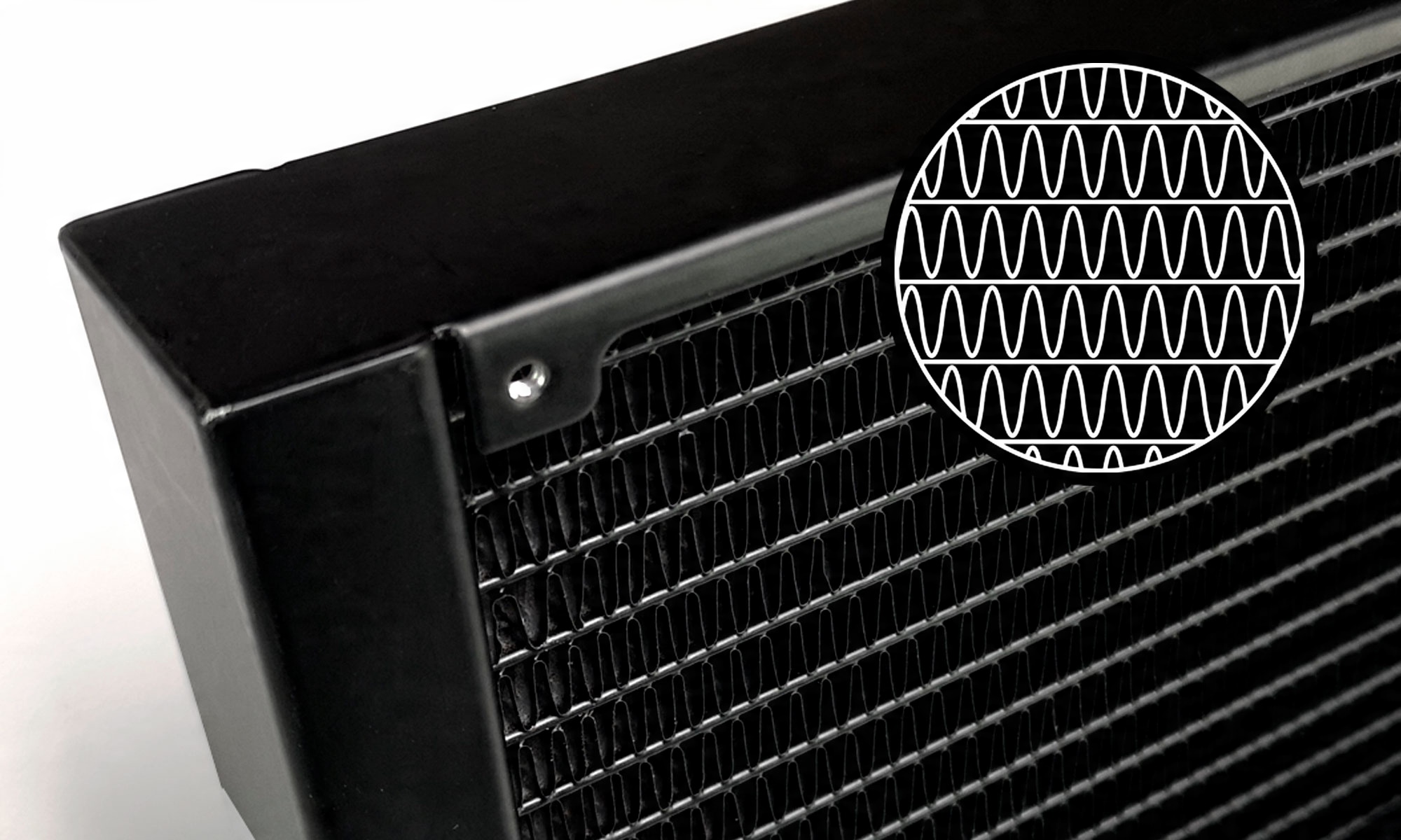 В отличие от большинства других производителей универсальных жидкостных систем охлаждения, мы полагаемся на радиаторы толщиной 38 мм с высокой плотностью ребер. Это означает, что в контуре можно использовать больше воды и значительно увеличить поверхность охлаждения.