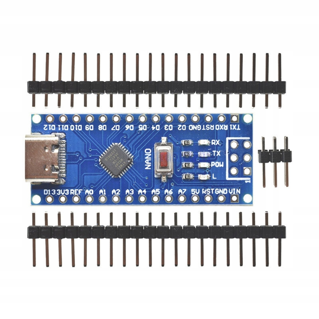 Модуль Arduino NANO с микроконтроллером ATmega328P и разъемом mini USB Type C. Он используется во многих микропроцессорных проектах. Система совместима с проектом Arduino.