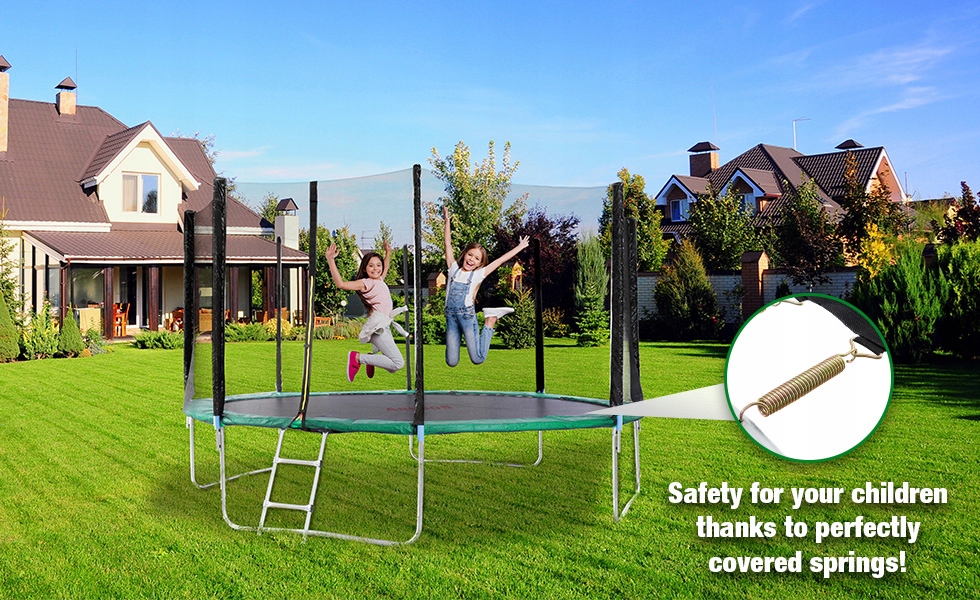 Защита на 360°: Этот защитный край шириной 32 см и толщиной 20 мм защищает вас от пружин при приземлении. Защита на 360° для неограниченного удовольствия во время прыжков на батуте. Вот и все!