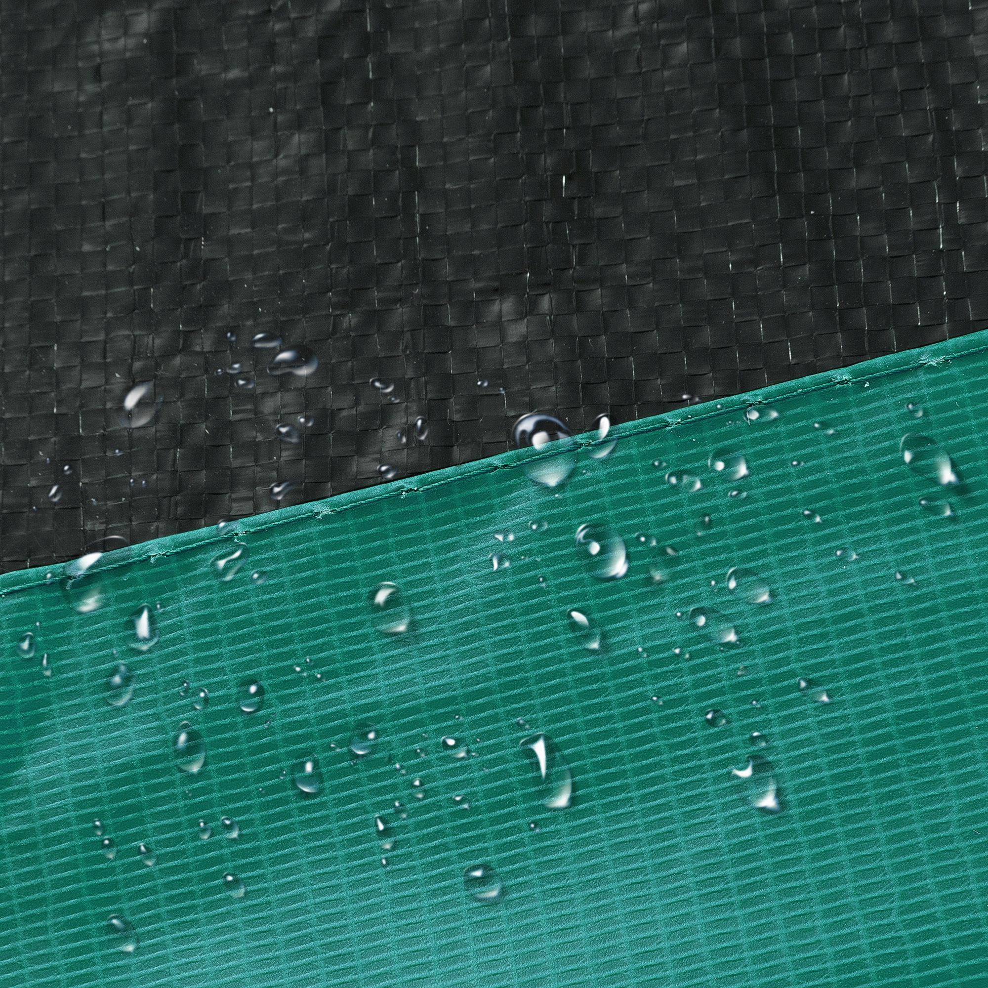 Устойчивая к ультрафиолетовому излучению и водонепроницаемая поверхность из ПВХ плотностью 310 г/м², а также пена EPE толщиной 20 мм защищают батут как в солнечные, так и в дождливые дни. Качественные швы защищают чехол от разрывов при частом использовании.