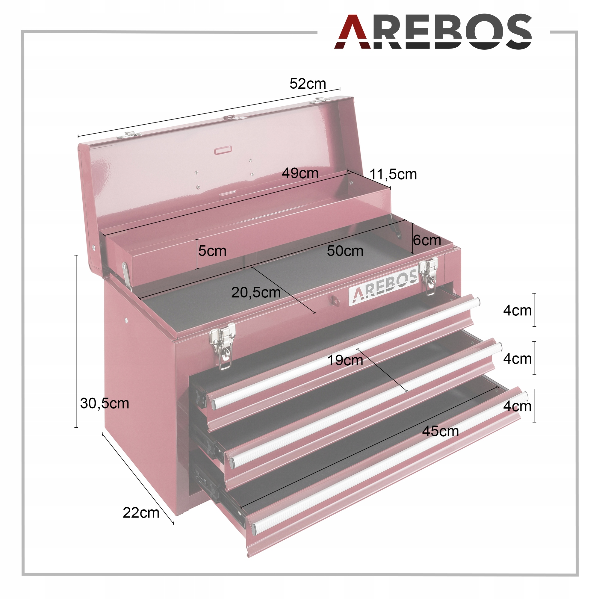 Arebos - Чемодан для инструментов | 3 ящика | Красный
