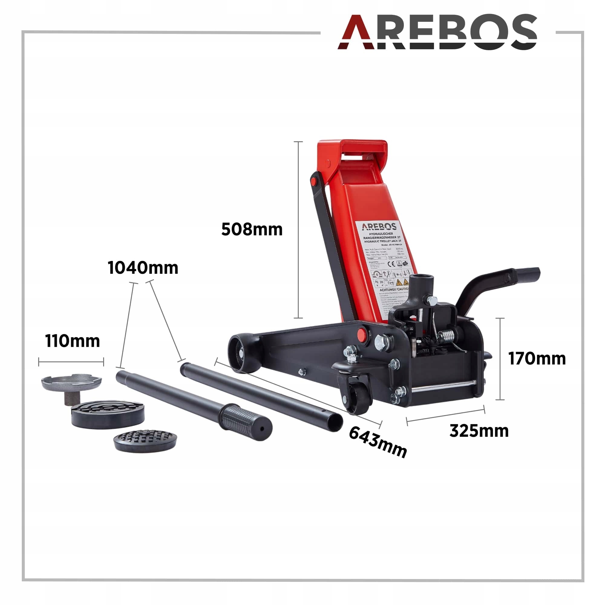 [ВАШ НАДЕЖНЫЙ ПОМОЩНИК] Подъемник AREBOS грузоподъемностью до 3 тонн представляет собой очень мощный небольшой инструмент для интенсивного и универсального использования, с высотой подъема от 130 до 508 мм и прочной конструкцией.