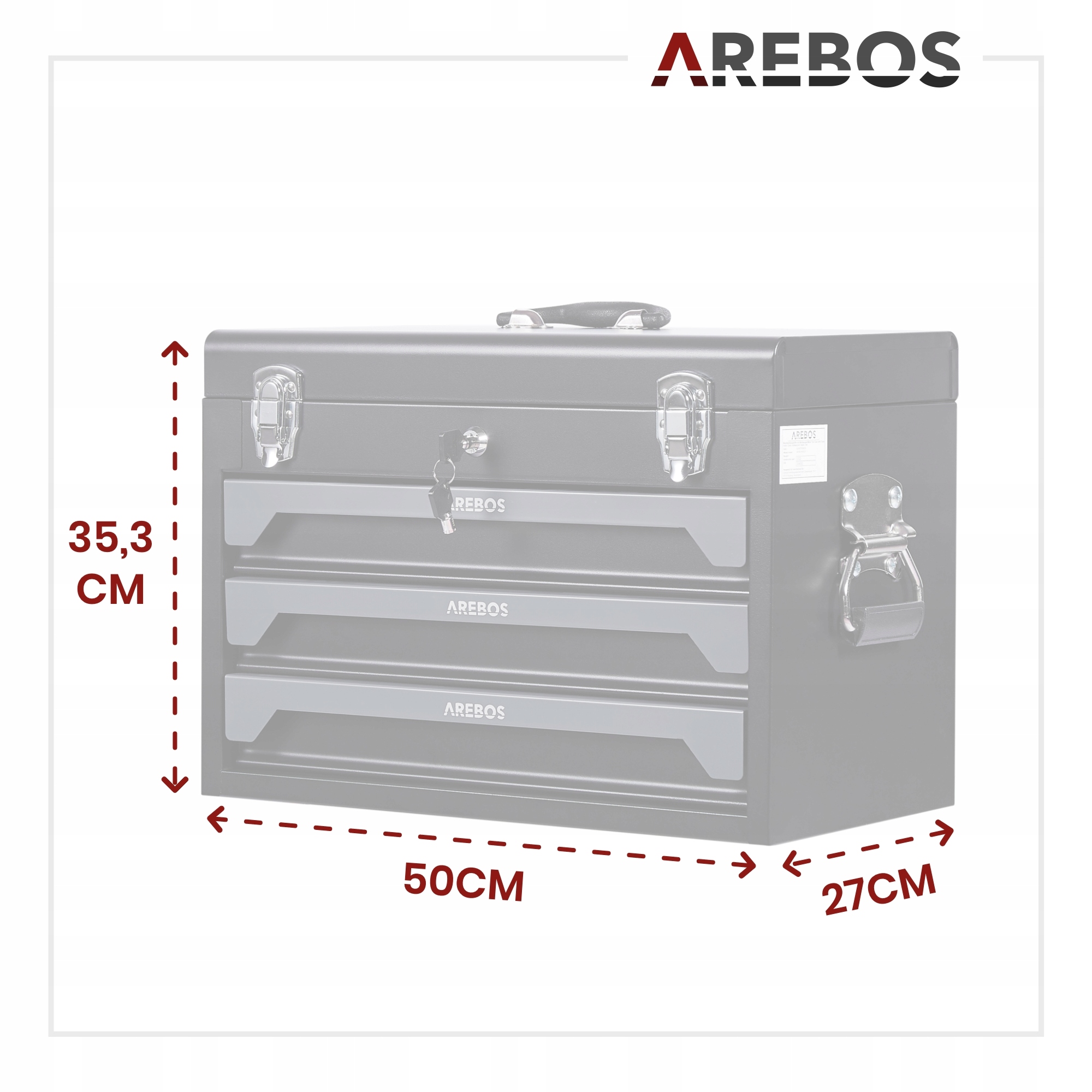 [ПРАКТИЧЕСКИЙ ЧЕМОДАН] Чемодан для инструментов с 3 выдвижными ящиками и запирающейся крышкой из стали с порошковым покрытием, с закругленными торцами | Оснащен удобной ручкой для переноски сверху и 2 металлическими ручками по бокам для удобства транспортировки.