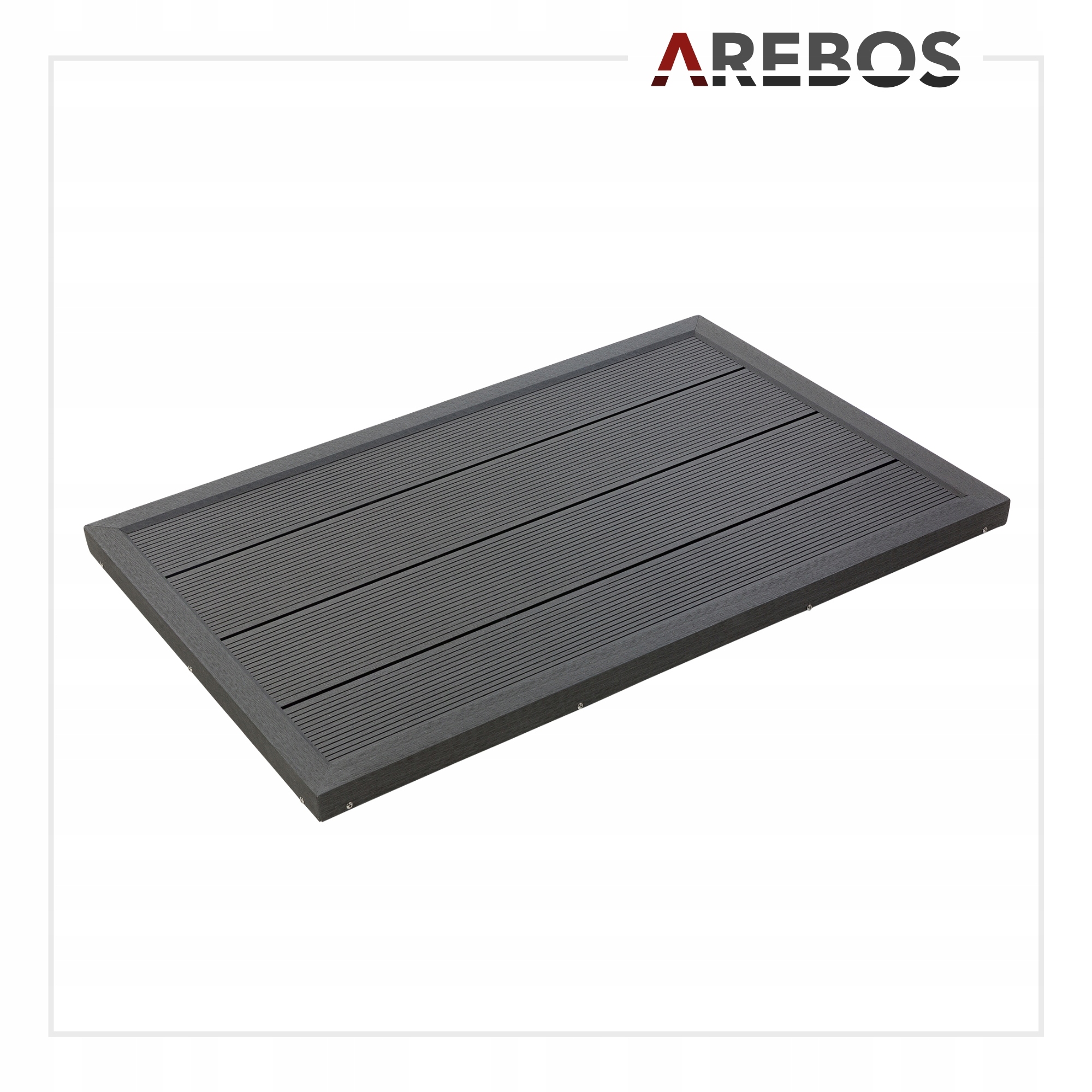 [ДОЛГОВЕЧНОСТЬ И МНОГОФУНКЦИОНАЛЬНОСТЬ] Прочная и устойчивая опорная плита AREBOS со специальной нескользящей поверхностью может служить прочным основанием для солнечного душа, а также лестницы для бассейна. Устойчивость к воде и погодным условиям ДПК имеет преимущество в долговечности перед древесиной, поскольку он более устойчив к износу и не подвергается атакам вредителей.