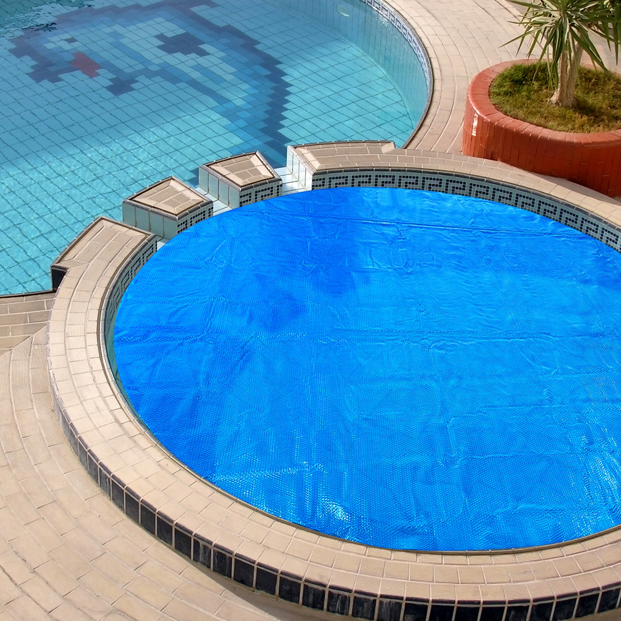 При наличии солнечной фольги работа обогревателя открытого бассейна становится намного более эффективной, поскольку подаваемое тепло не может немедленно уйти обратно. Это позволит продлить купальный сезон.