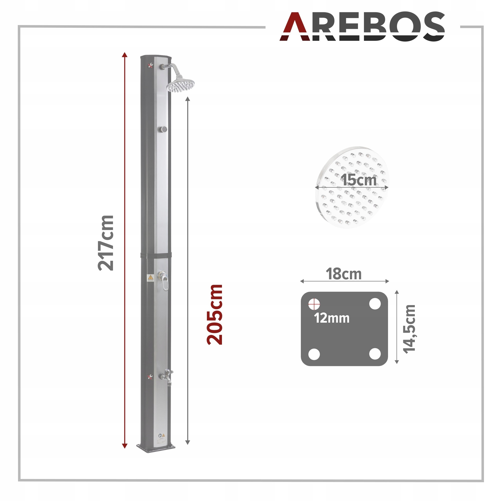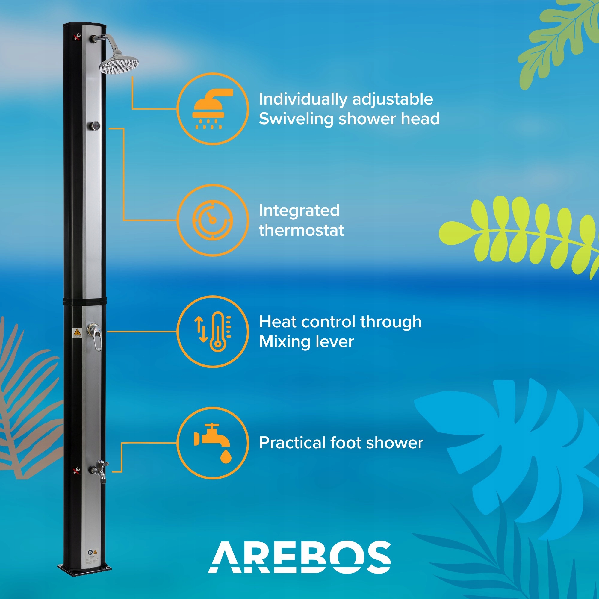 Arebos - Солнечный душ | 35 л | Серебристо-черный | с антрацитовой пластиной