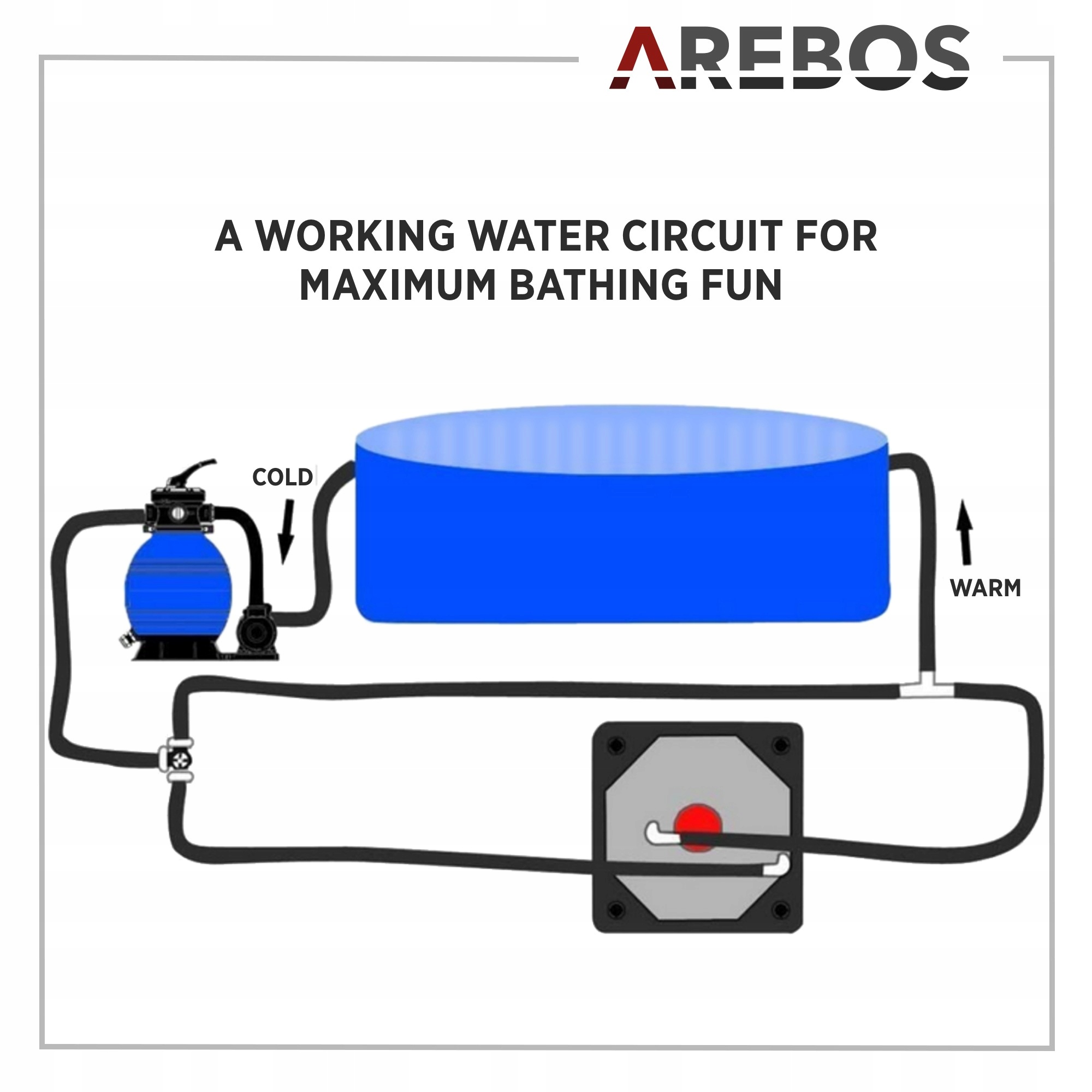 [ВЕРНУТЬСЯ К ЗДОРОВЬЮ] Мы в AREBOS поможем вам продлить купальный сезон, обеспечив приятную температуру воды в вашем бассейне или открытом бассейне благодаря нашему солнечному обогреву. Разместите нагревательный модуль в солнечном месте и сразу же получите выгоду от непревзойденного теплообмена солнечного отопления.