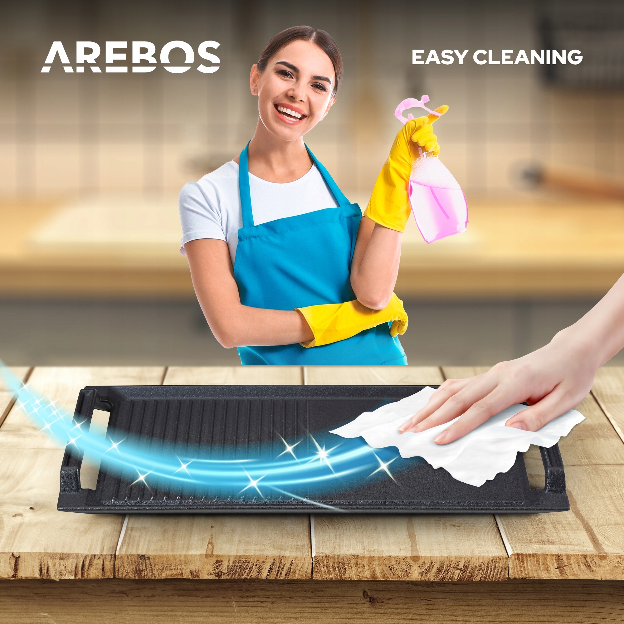 Благодаря инновационной двухэтажной поверхности, пластинка для барбекю обеспечивает максимальную гибкость во время приготовления. На одной стороне есть ребра для гриля, идеально подходящие для жарки, рыбы и овощей, чтобы создать подлинные следы гриля и вкусов. Другая сторона - это гладкая жареная поверхность, идеально подходящая для жарки блюд, таких как яйца, блины или для нежных приправных овощей.