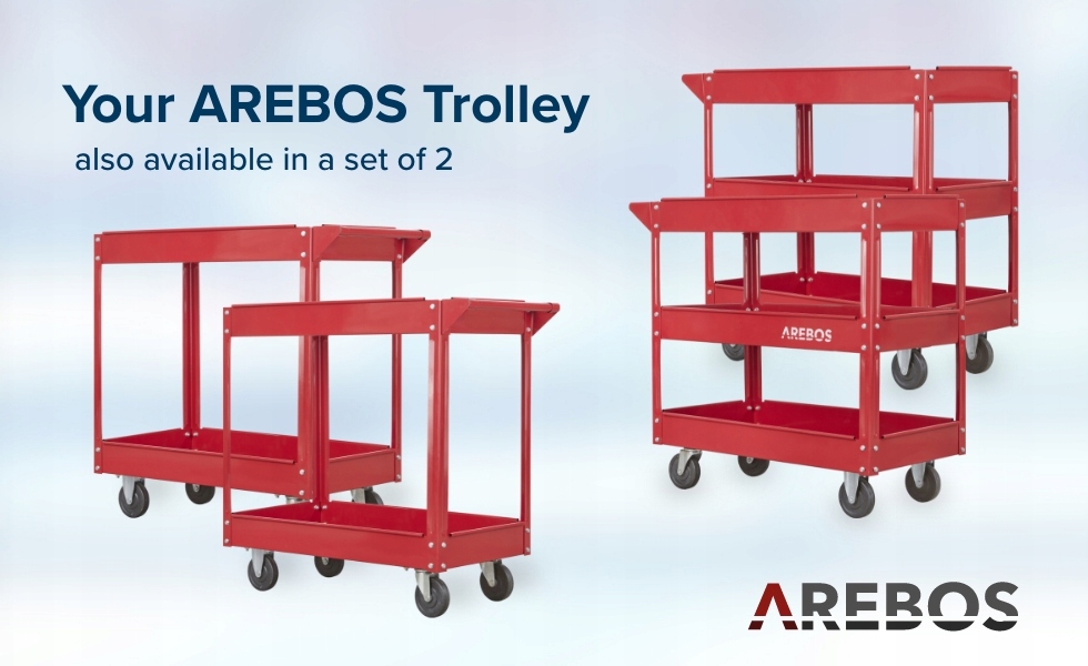 [БОЛЬШАЯ ВМЕСТИМОСТЬ] Наша сборочная тележка AREBOS оснащена двумя большими загрузочными полками. | Открытые полки позволяют без ограничений добираться до инструментов или сборочных деталей со всех сторон.