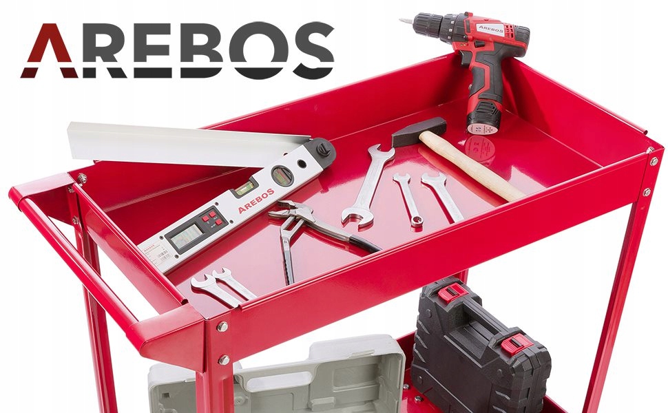 [ПРОЧНАЯ КОНСТРУКЦИЯ]Роликовая тележка AREBOS изготовлена из прочной стали | Прочная и устойчивая к царапинам столешница | Поверхность устойчива к маслам и другим химикатам. | Грузоподъемность до 100 кг. | Здесь найдется достаточно места даже для более тяжелых и крупных деталей или инструментов.
