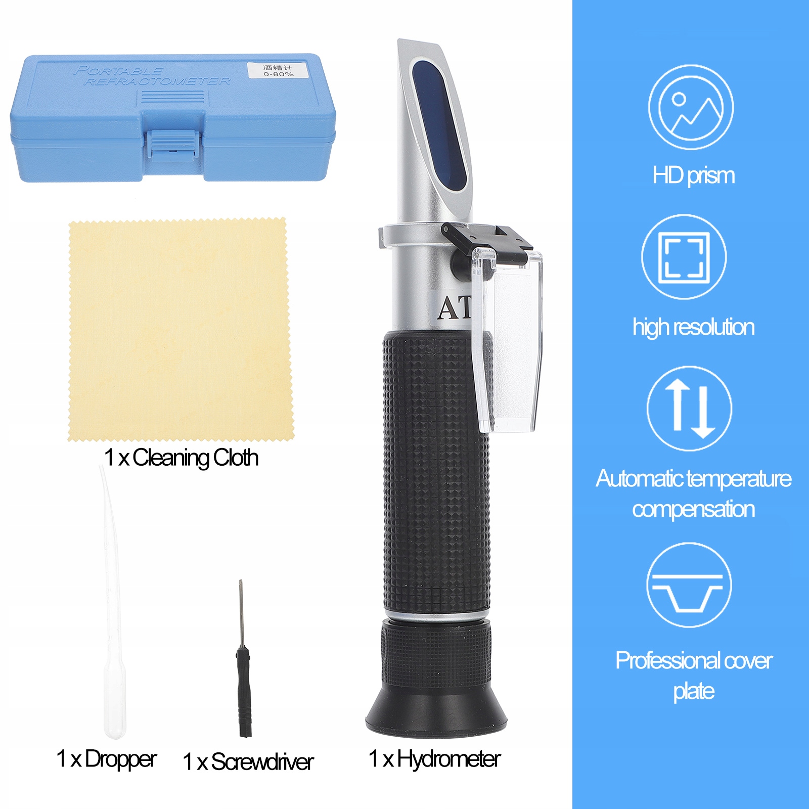 ✅Спиртовой рефрактометр изготовлен из высококачественного алюминиевого сплава, который легок в использовании, безопасен и долговечен.