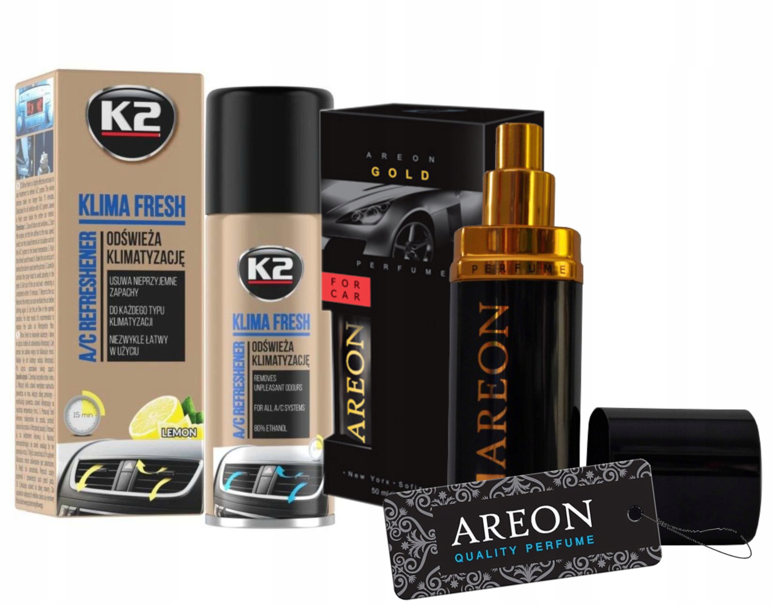 Ареон Car Perfume Gold автомобільний парфумерний спрей 50мл + Кондиціонер освіжаюча пінка K2 Klima Doktor 500 мл