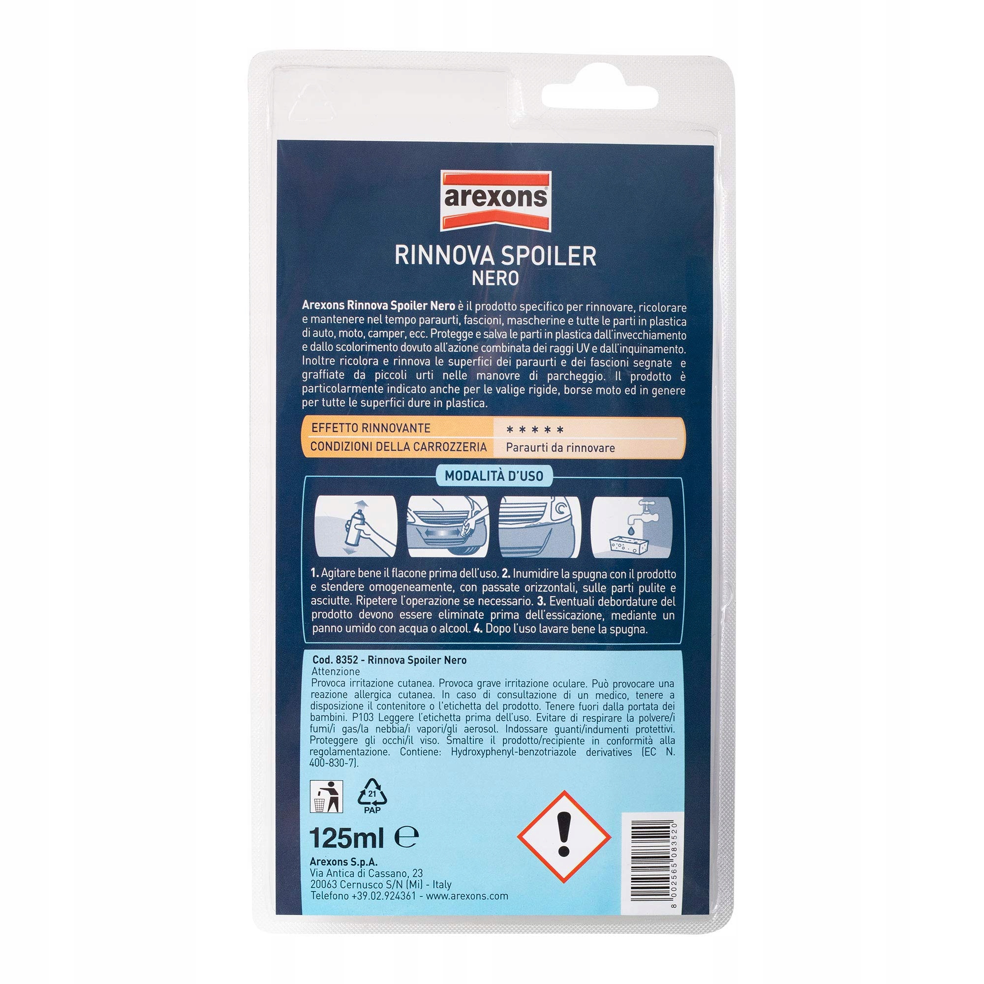 Идеально для обновления, полировки и поддержания бамперов, крыльев, крышек радиатора и всех пластиковых частей автомобилей, мотоциклов, караванов и т. Д. Он защищает и предотвращает старение или исчезание пластиковых деталей под воздействием ультрафиолетовых лучей и загрязнения. Кроме того, поверхности бамперов и крыльев, которые используются и слегка царапаются во время парковки, обрезаются и обновляются. С перчаткой и губкой для применения